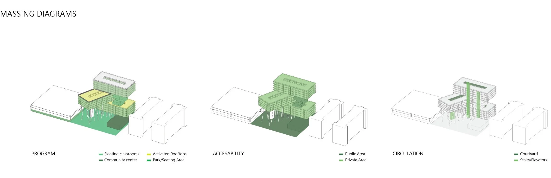 Incorporating biophilic design with our architecture, allowed us to create an energetic and dynamic setting, a place where people can live, work, and learn. The biophilic design does not only improve physical conditions such as thermal and airflow variability but, it motivates its residents and visitors to connect more with nature.